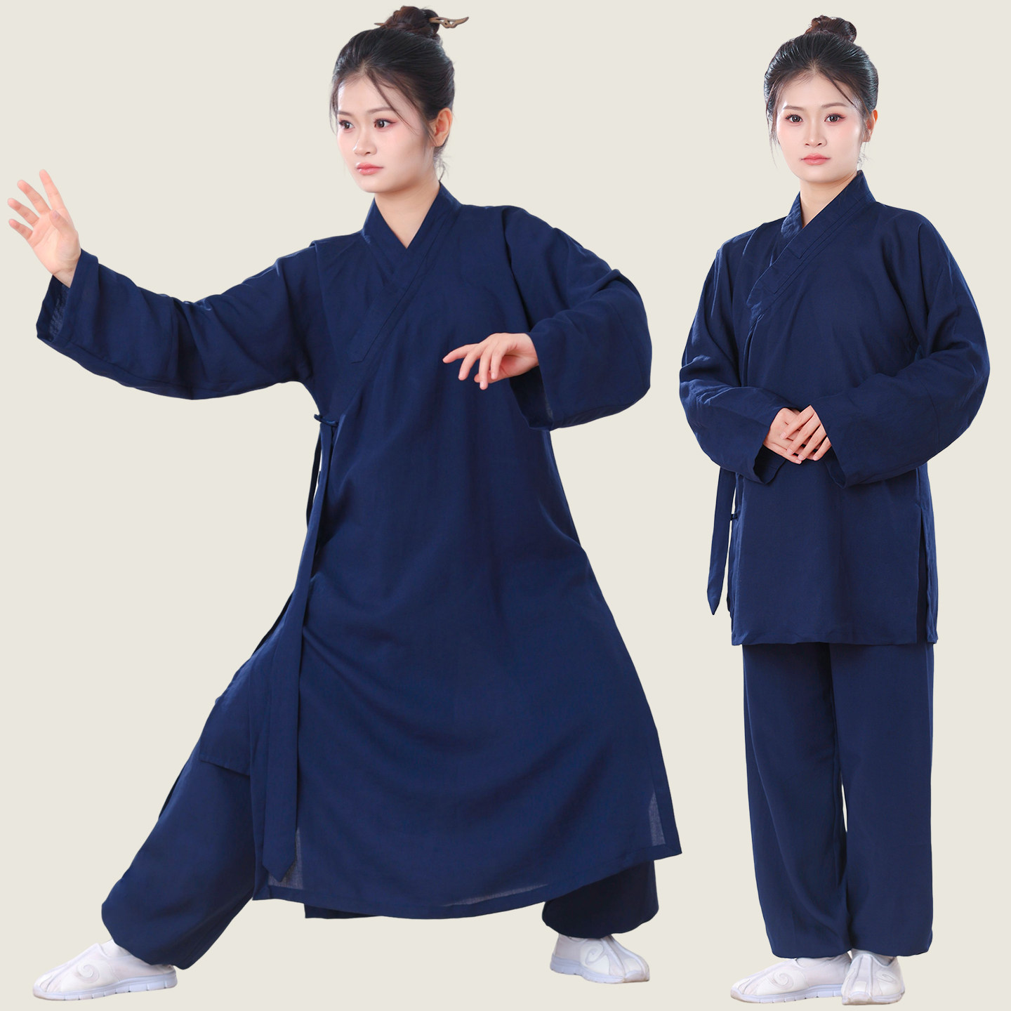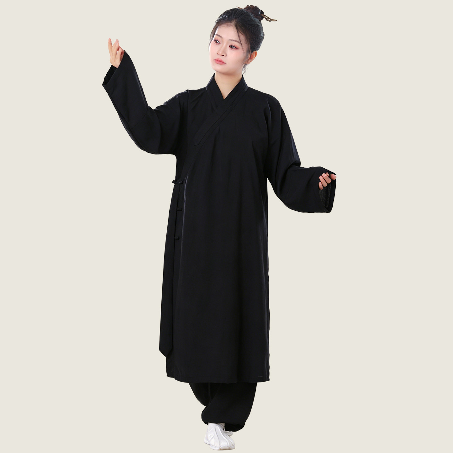 📚 春夏传统直袖三清领斜襟道袍男女同款交领道士服棉麻长袍大褂汉服