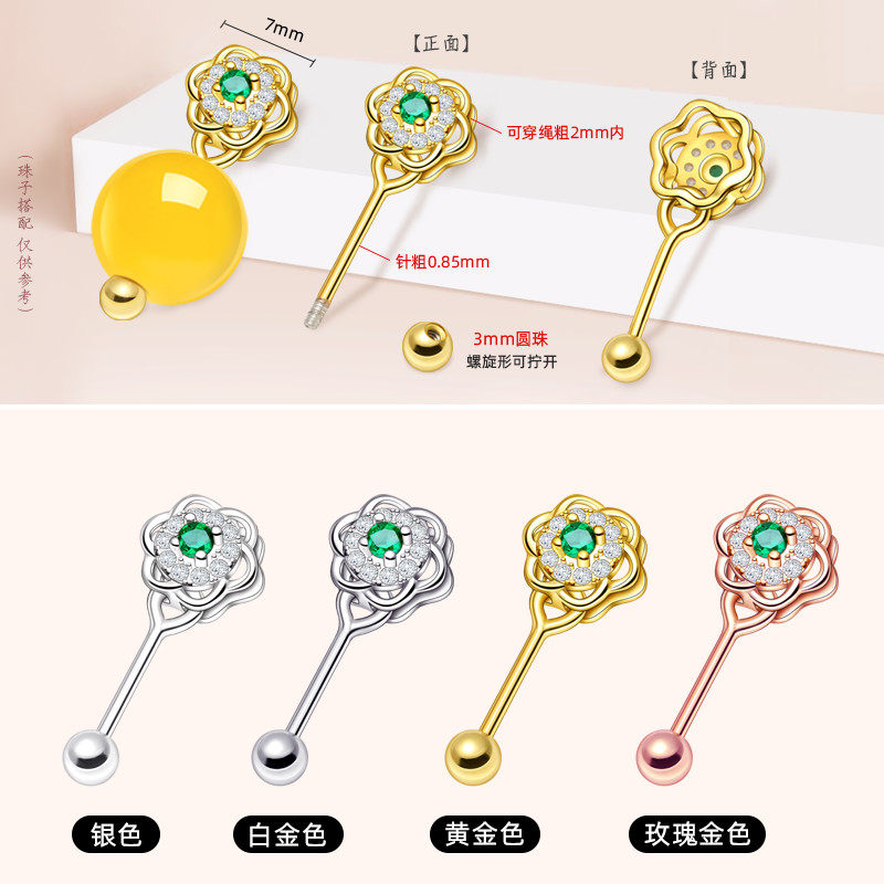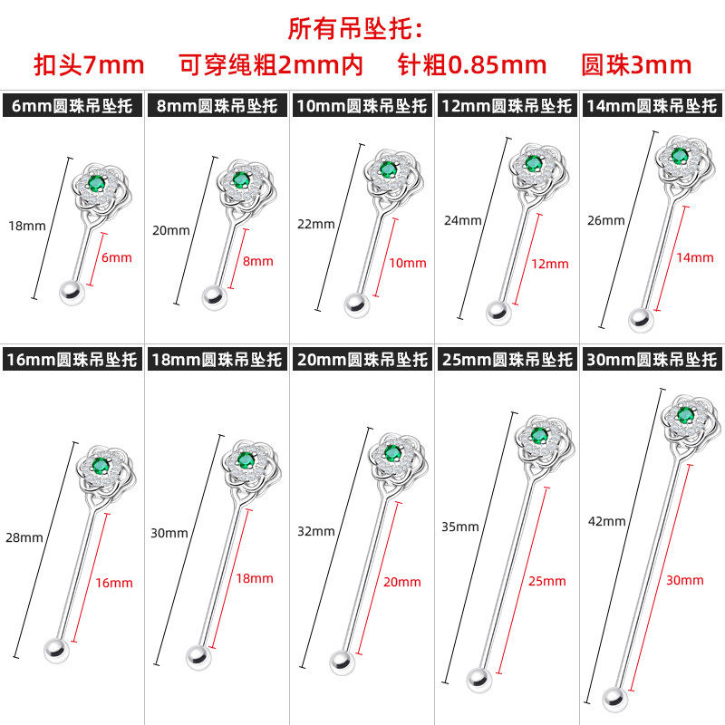 📚 S925纯银吊坠扣头 水晶珍珠螺丝螺纹空托挂坠DIY串珠配件圆珠卡扣