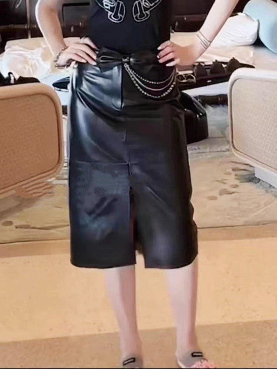 📚 前开叉皮裙2025秋季新款女装法式时尚洋气陈太太同款真皮半身裙潮