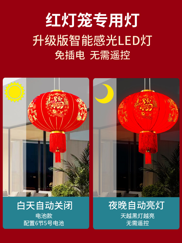 📚 新款红灯笼专用灯电池款免插电无线智能感光LED灯自动开关续航长