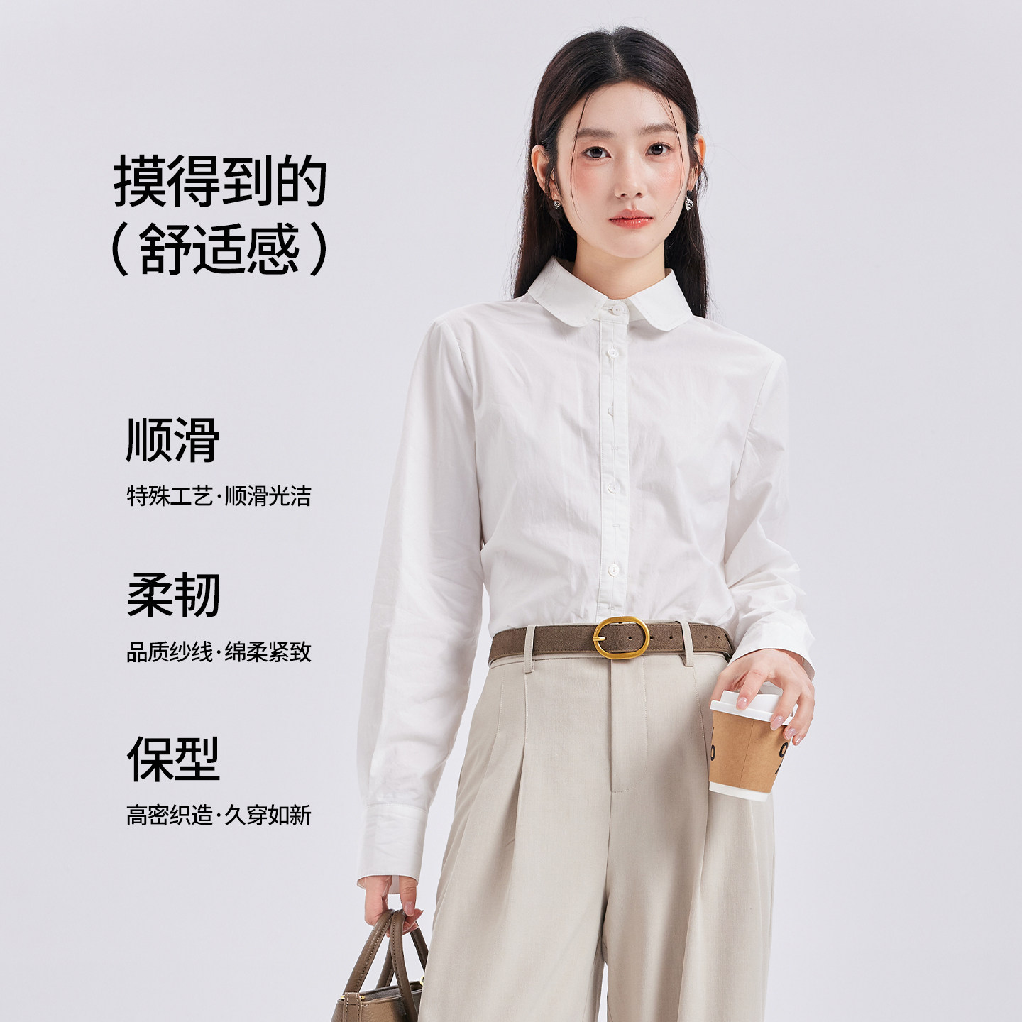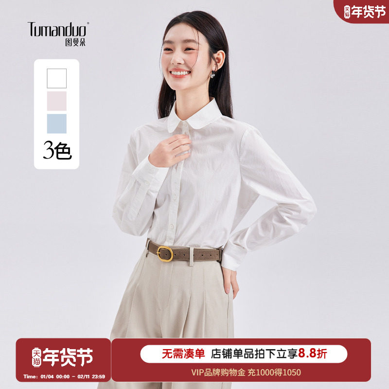 📚 图曼朵白色方领衬衫女2026春季通勤正装上衣教资面试穿搭长袖衬衣