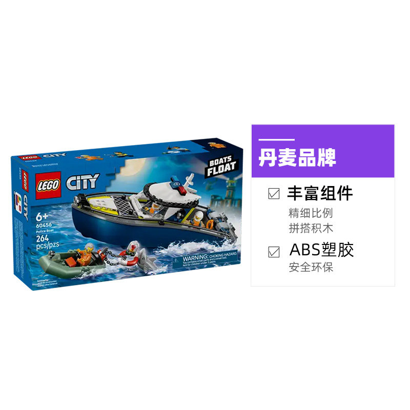 📚 【自营】乐高积木城市60456警用巡逻艇拼装玩具男女孩节生日礼物