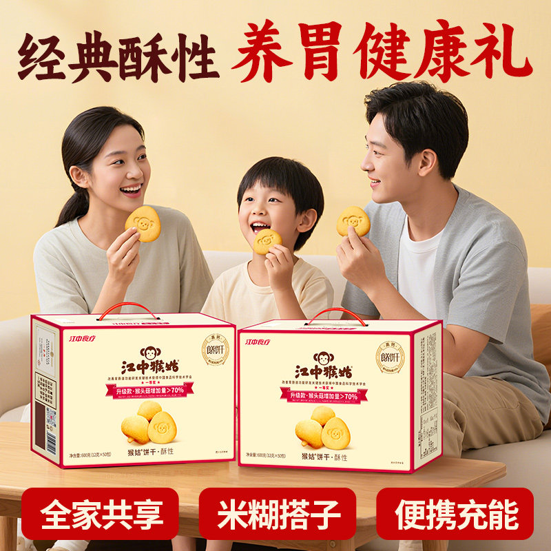 📚 江中猴姑饼干养胃猴头菇饮料早餐休闲零食下午茶健康营养小袋600g