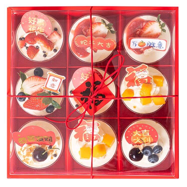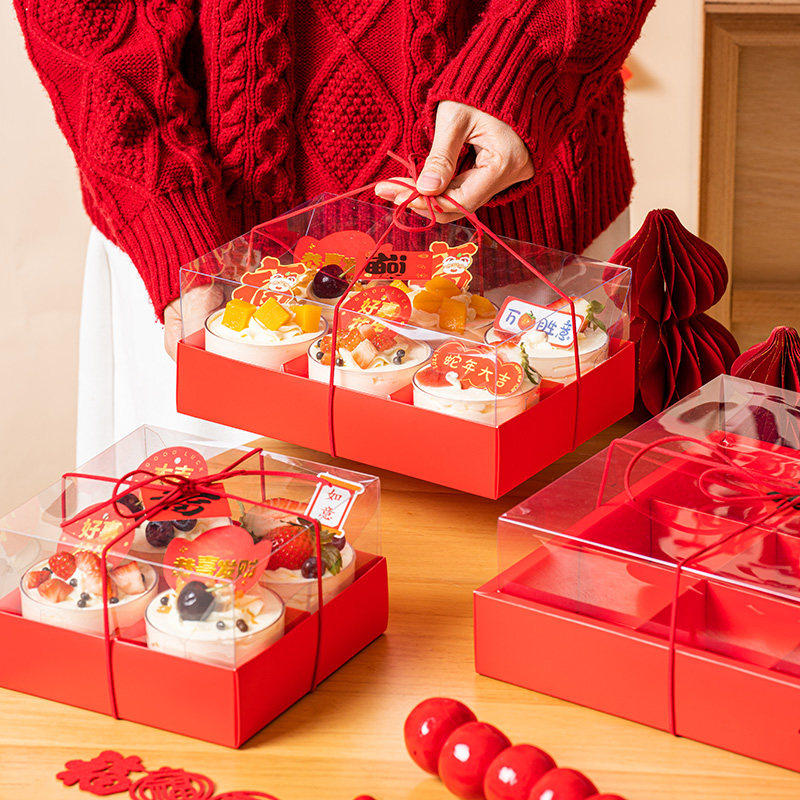 📚 新年红蛋糕盒2寸3寸小慕斯甜品蛋糕盒手提包装盒纸杯蛋糕4/6/9粒