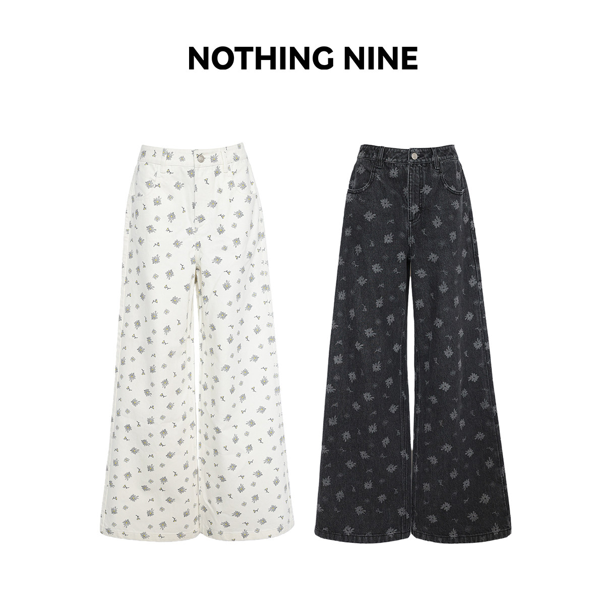 📚 NOTHING NINE 莱比锡岛屿小雏菊牛仔裤锡器灰/白色