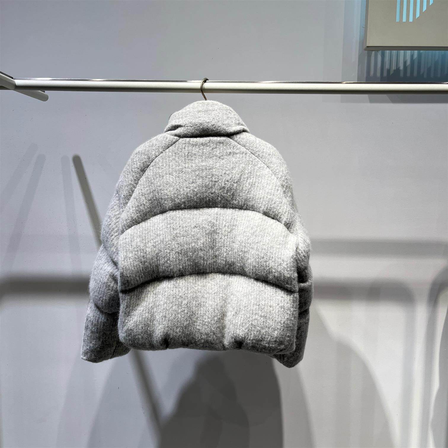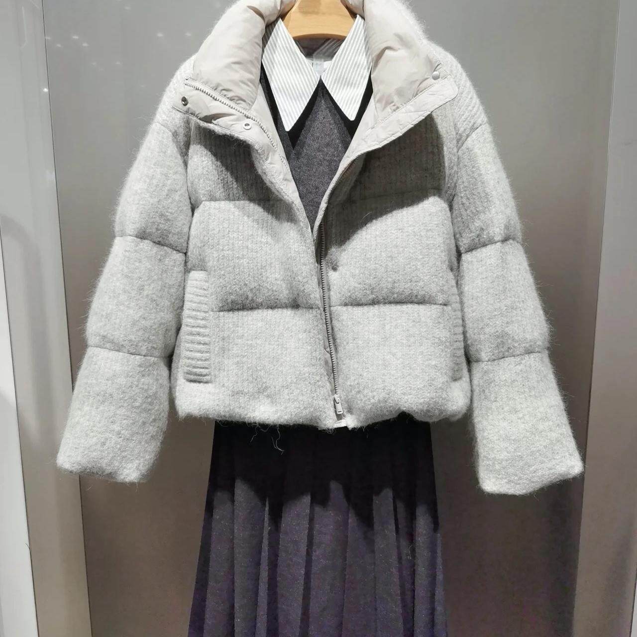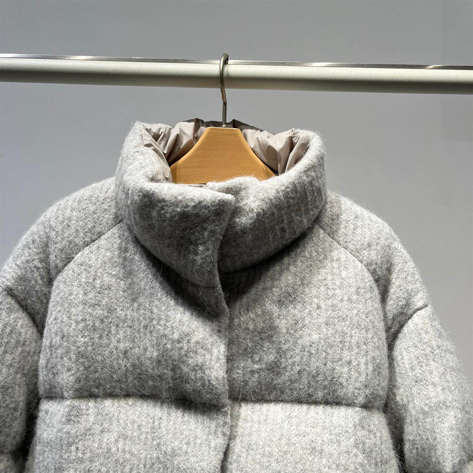 📚 MM麦麦2025冬季新款浅灰色立领羊驼毛羽绒服短款外套女5FA280841Q