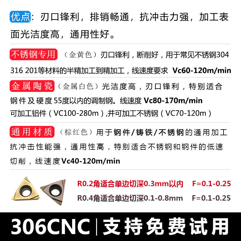 📚 数控内孔精车刀片TPGH110304L/090202/TBGT060102L不锈钢陶瓷镗刀
