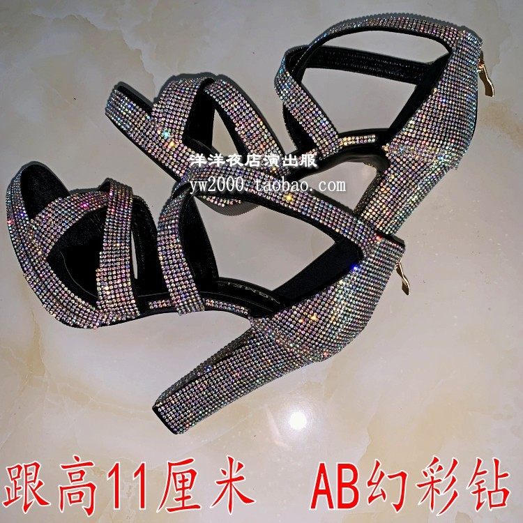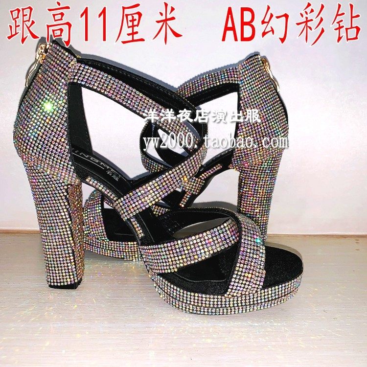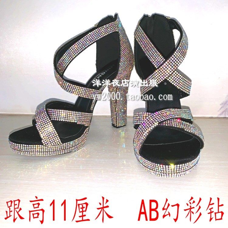 📚 新款dj女歌手主持水钻钢管舞台演出鞋大码40 41 43码跟高11cm钻鞋