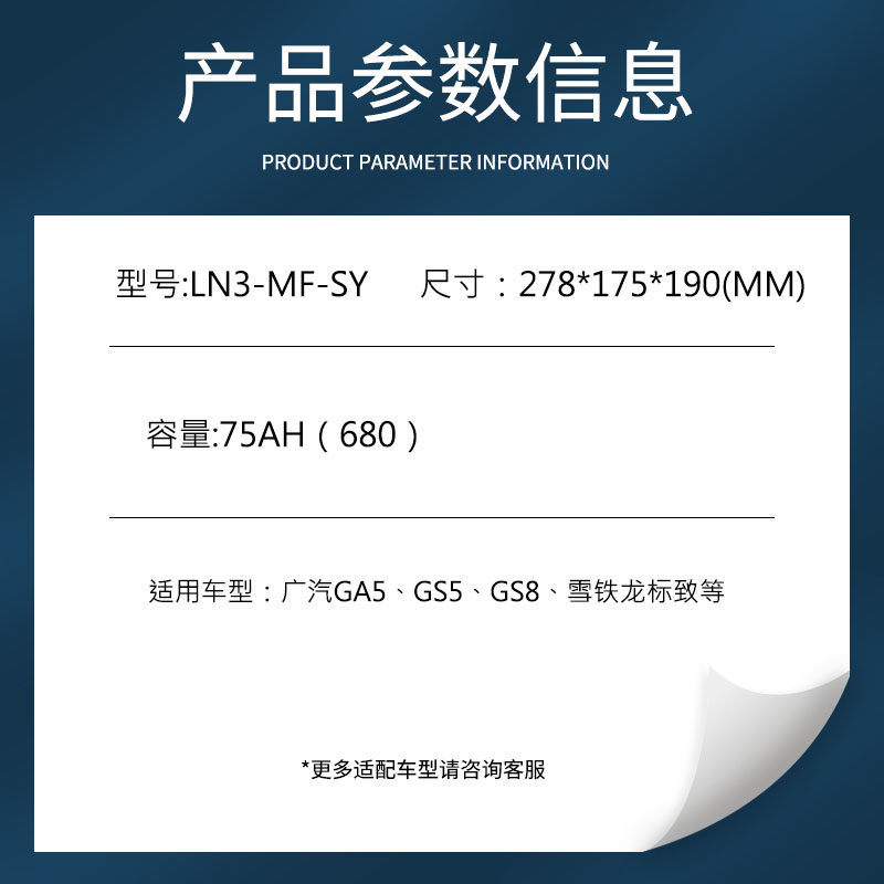 📚 汤浅蓄电池LN3-MF-SY适配广汽GS8/GS7/传祺GA5/GS5汽车电瓶电池