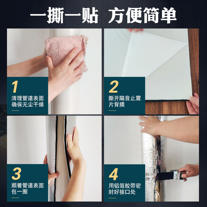 📚 卫生间下水消音水管隔音棉包管道隔音神器自粘下水管排水管下水道