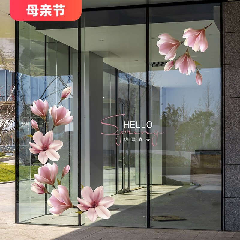 📚 玻璃美化静电贴画白玉兰花卉大橱窗装饰春天酒店商场展厅布置贴纸