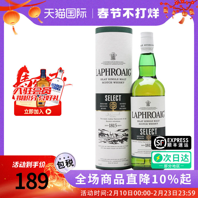 17¥ CZ009 xnSjUMYl7Jq¥ https://m.tb.cn/h.7yPre5n Laphroaig拉弗格精选750ML单一麦芽威士忌精锐橡木桶海外进口正品 --------------------- 【原售价】300元 【现售价】300元。