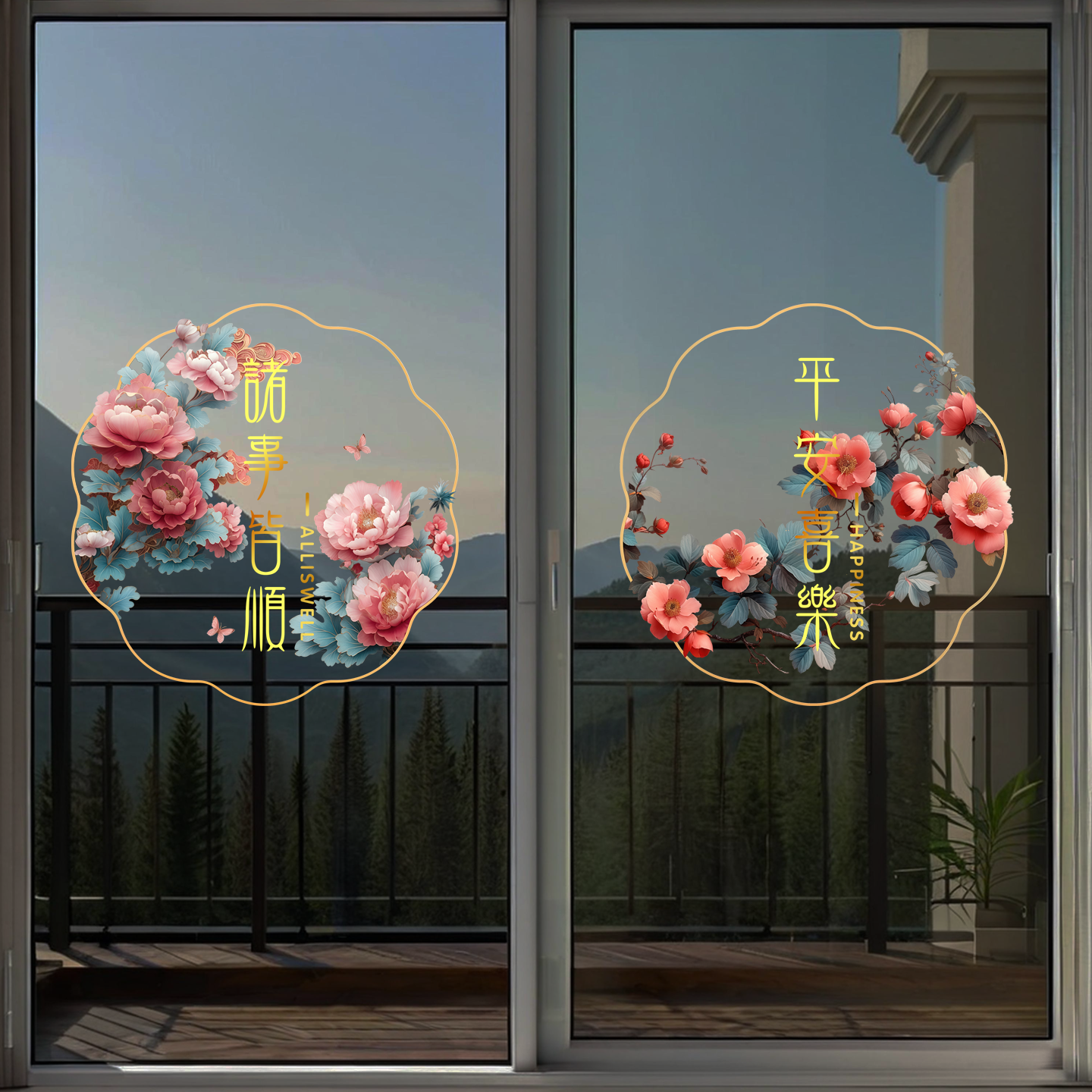 贴纸窗花推拉门防撞复古