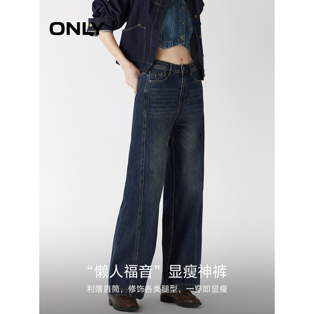 📚 ONLY2025冬季新款休闲百搭松弛感高腰显瘦阔腿老爹直筒牛仔裤女