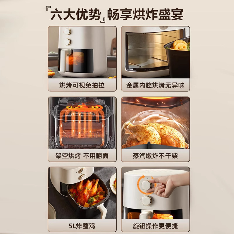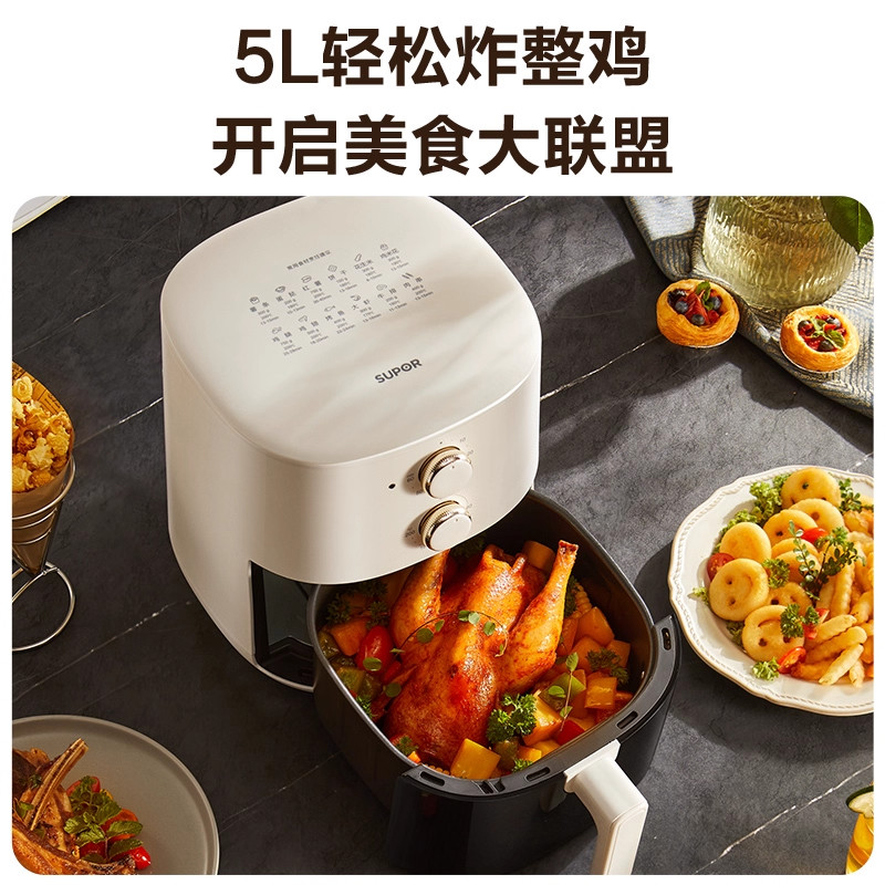 📚 苏泊尔可视空气炸锅家用智能多功能5L大容量全自动金属内腔电炸锅