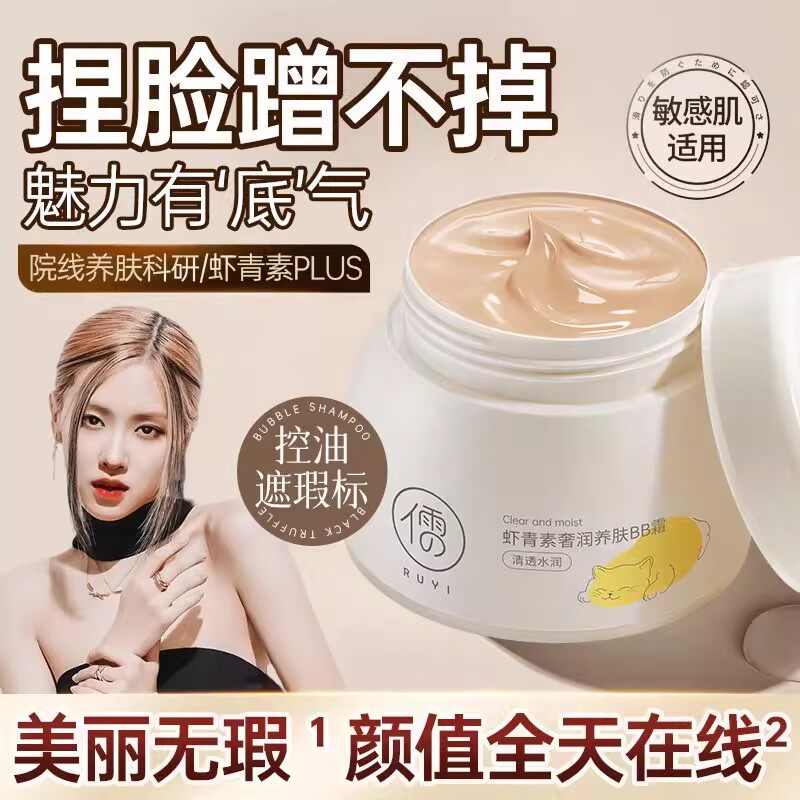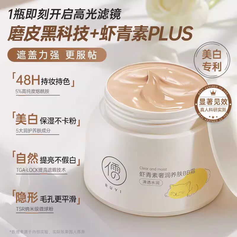 📚 儒意虾青素BB霜气垫防水防汗不脱妆持久遮瑕控油不卡粉底液女