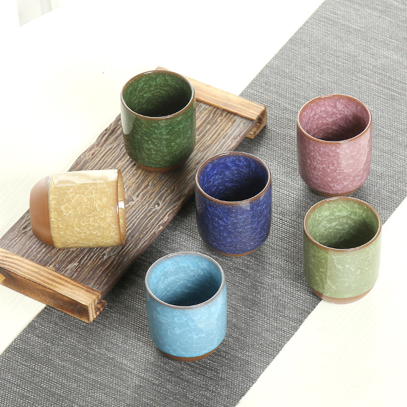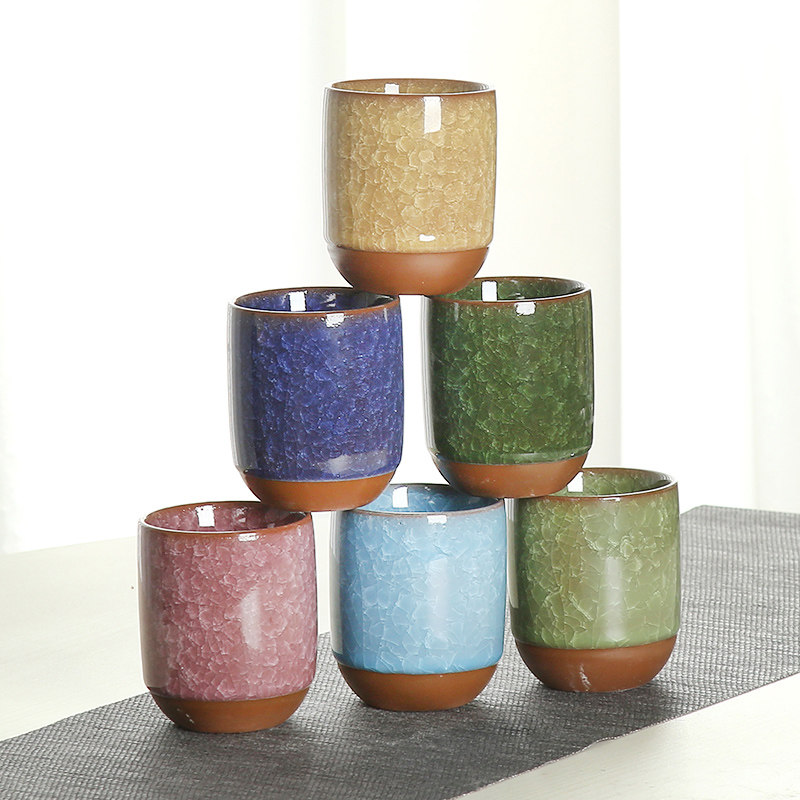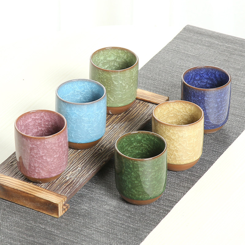📚 茶杯陶瓷大号水h杯冰裂七彩茶杯不同颜色杯子单杯六只装整套杯家