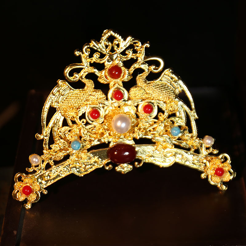 📚 古风汉服发冠掩鬓发钗全套头饰明制狄髻发簪凤簪汉婚女仙重工配饰