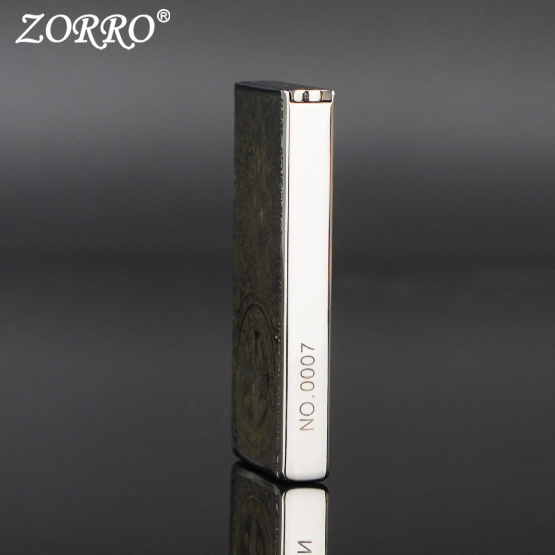 📚 超薄佐罗白镍双色敢死队煤油打火机创意银色升降机窄机ZORRO火机