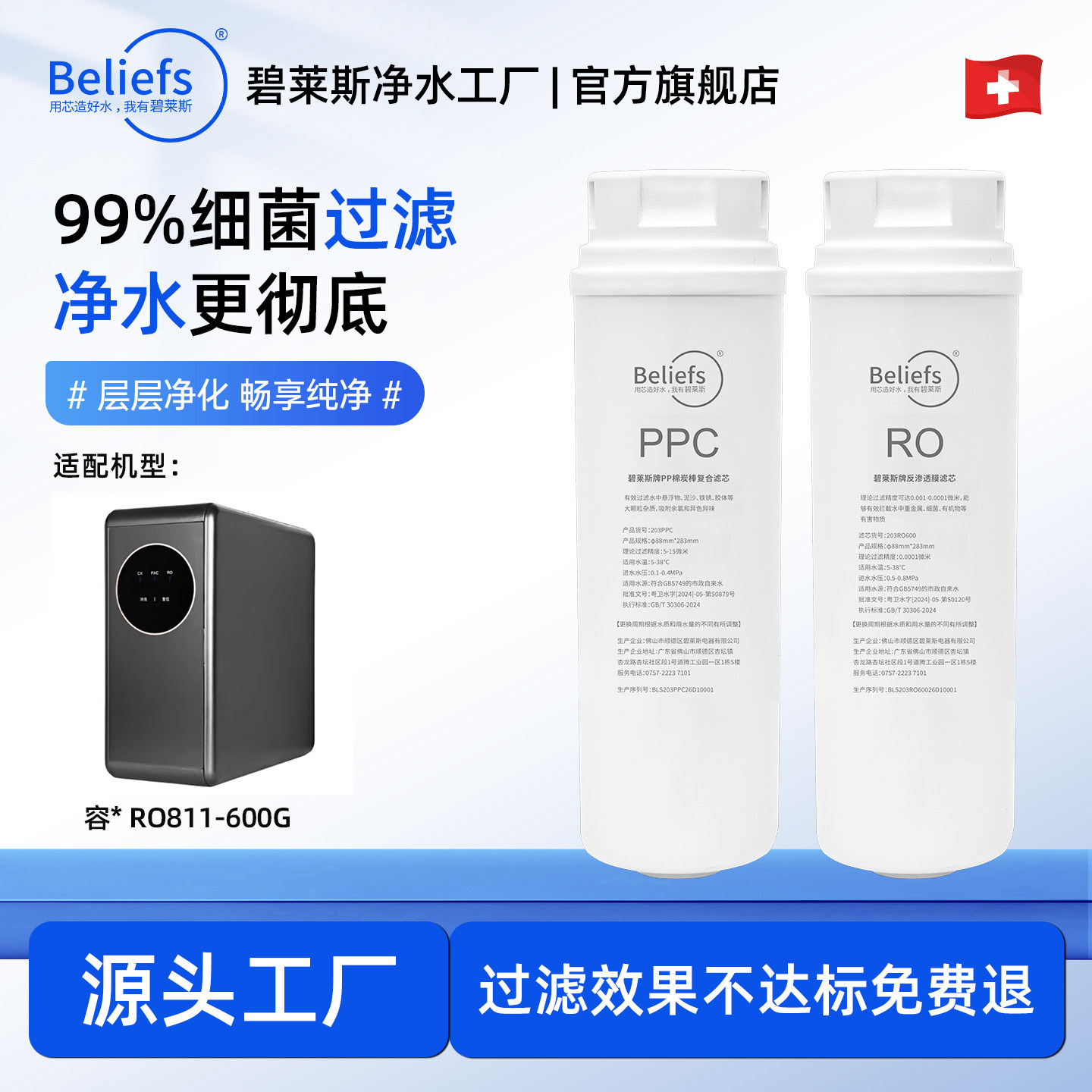 📚 碧莱斯适用容声RO811-600G款家用厨下RO膜反渗透净水器全套滤芯