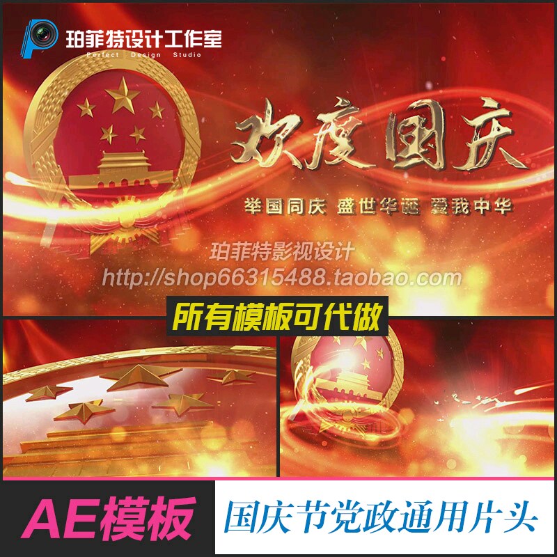 📚 国庆节十一国徽金属字大金字国庆片头片头大标题主题展示ae模板