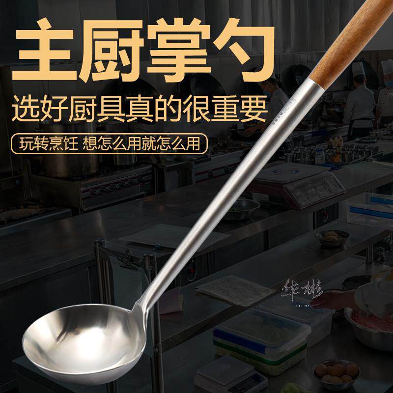 📚 加厚不锈钢粤菜厨师专用长柄炒勺不粘锅大号汤勺分菜炒菜勺子商用