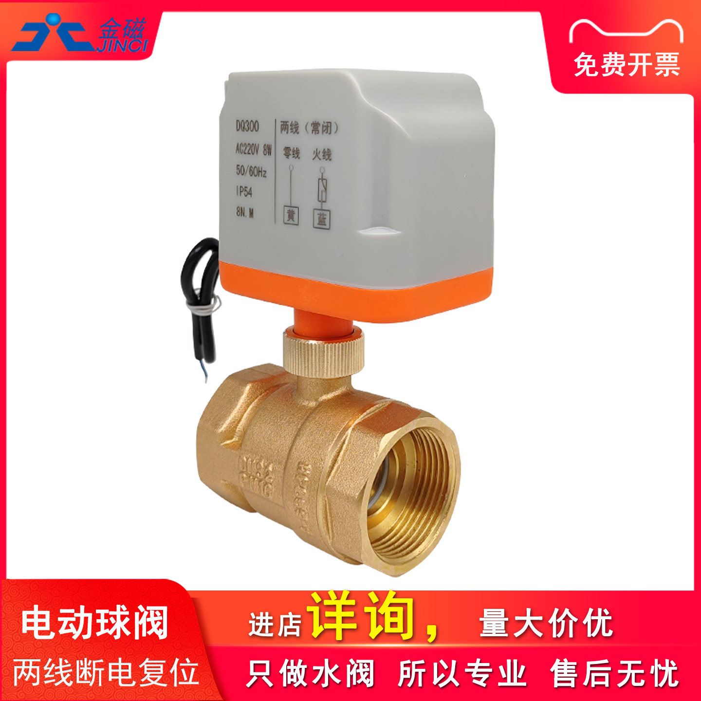 📚 电动二通球阀220v两线常闭黄铜阀24v管道水阀开关1寸代替电磁阀