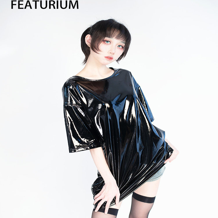 📚 绯卡霖 宽松T恤基础款外套罩衫漆皮纯黑oversize原宿风FEATURIUM