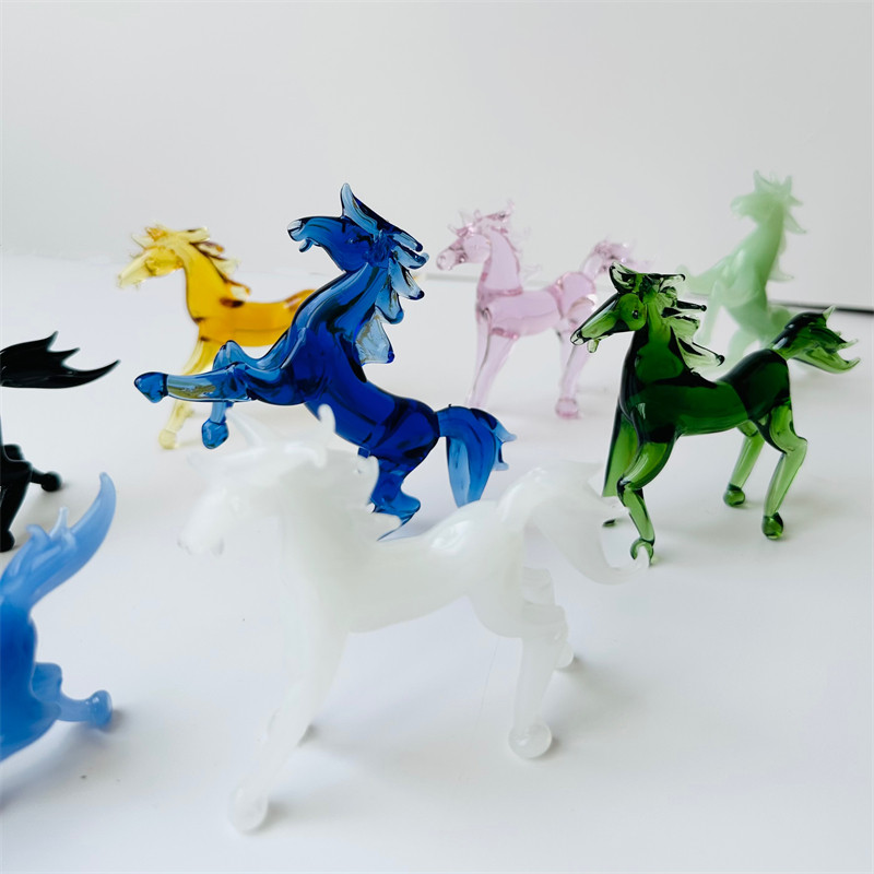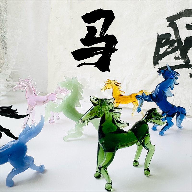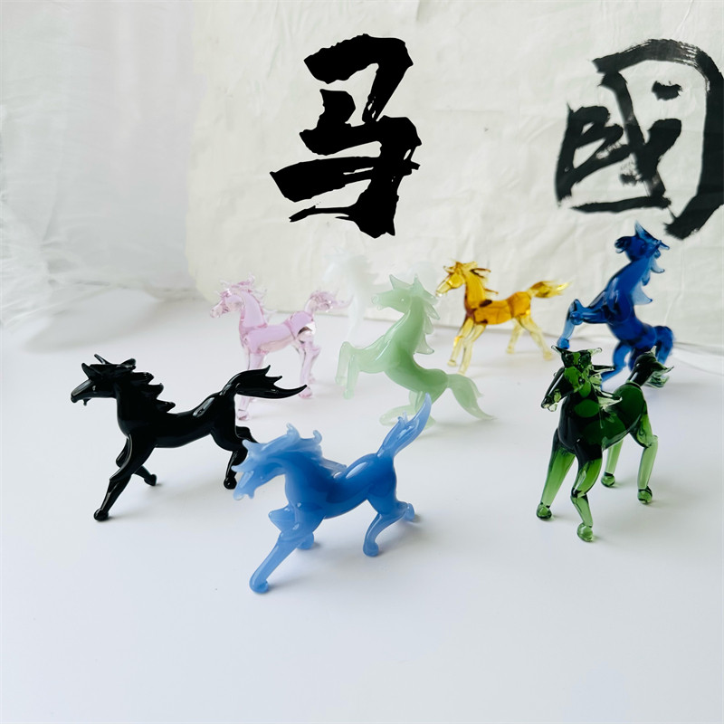 📚 淄博琉璃八骏马纯手工摆件送礼黑马动物灵动生肖办公室玻璃工艺