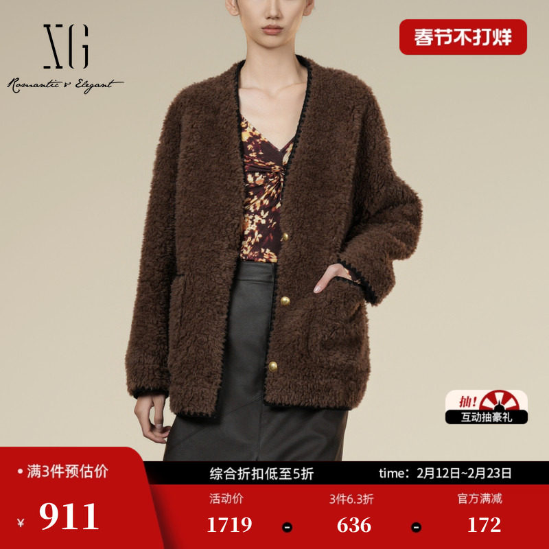 38¥ CZ356 l0z2UOsE5lb¥ https://m.tb.cn/h.7EqEuK7 XG雪歌厚款长袖纯绵羊毛外套2025冬季新款深棕色中长羊羔绒大衣女 --------------------- 【原售价】2,698元 【现售价】1,719元。