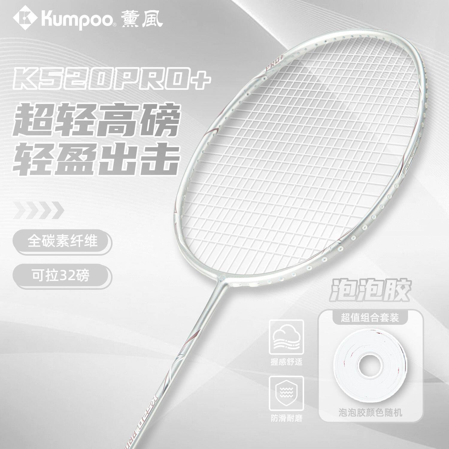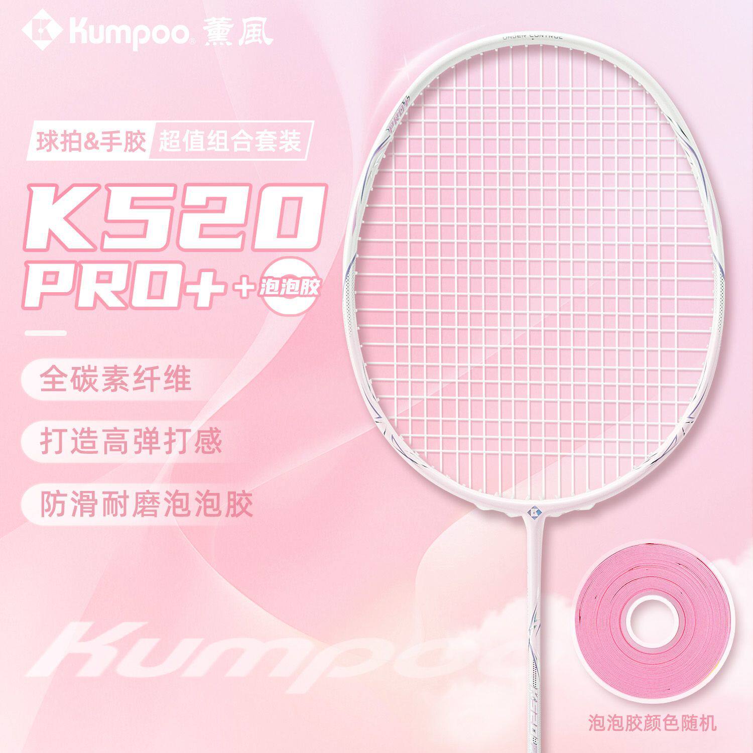 📚 薰风K520PRO+桃姬升级泡泡胶组合羽毛球拍全碳素男女学生熏风银刃