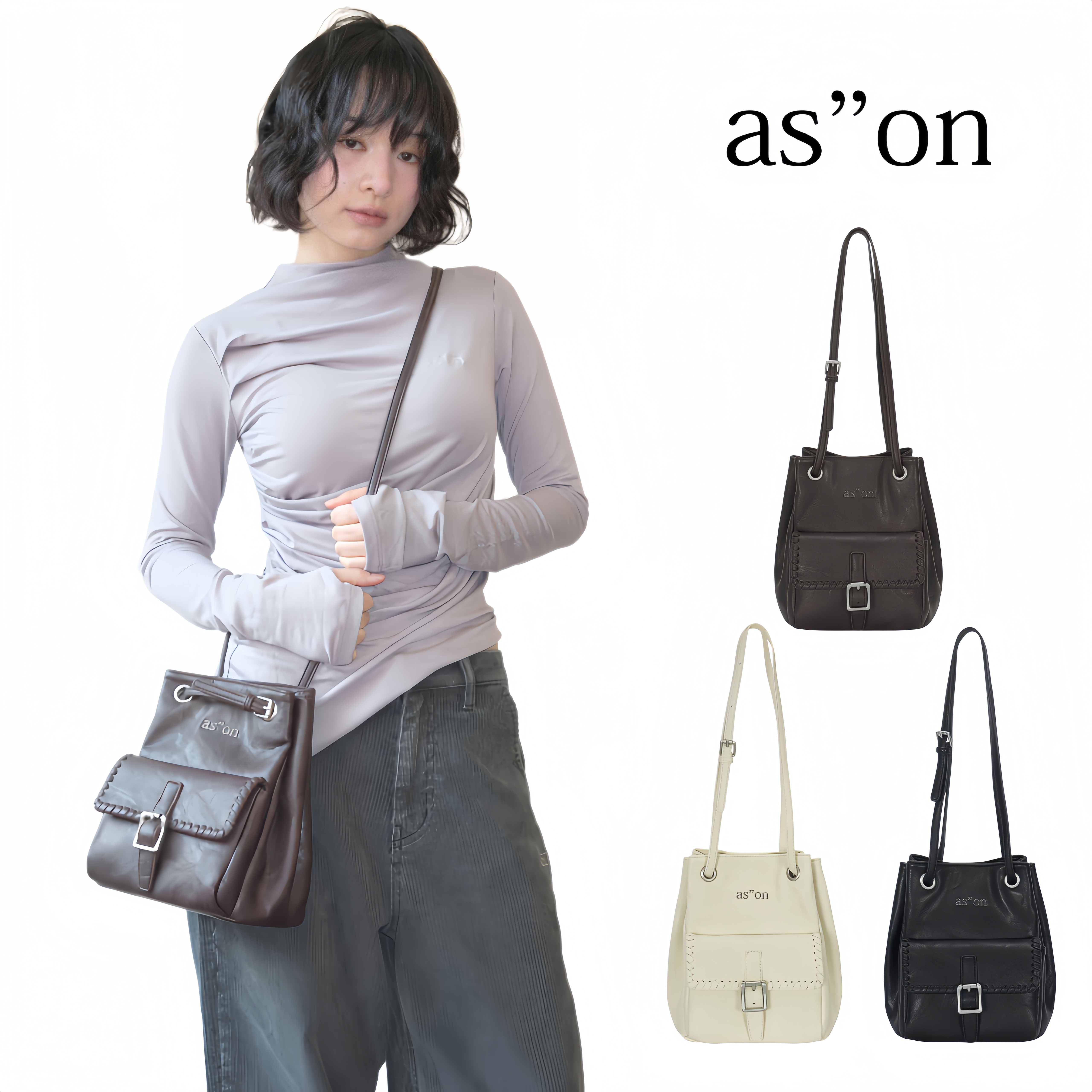 📚 韩国新款ASON口袋包抽绳单肩手提包复古机车包百搭时尚斜挎小方包