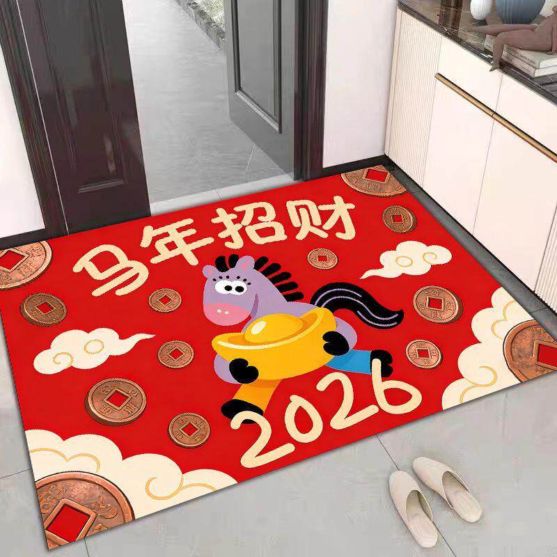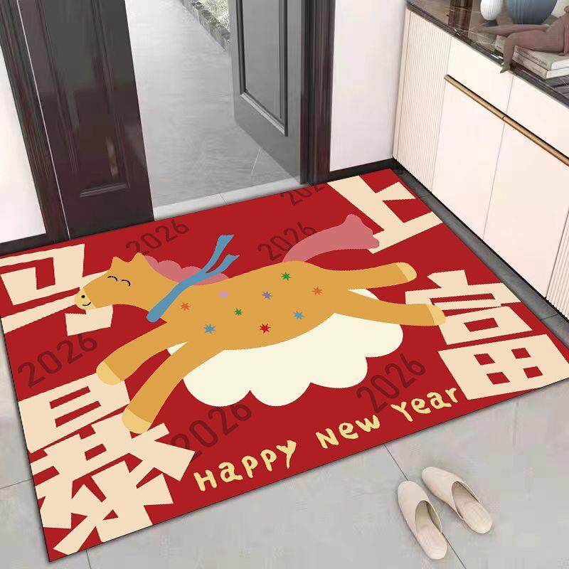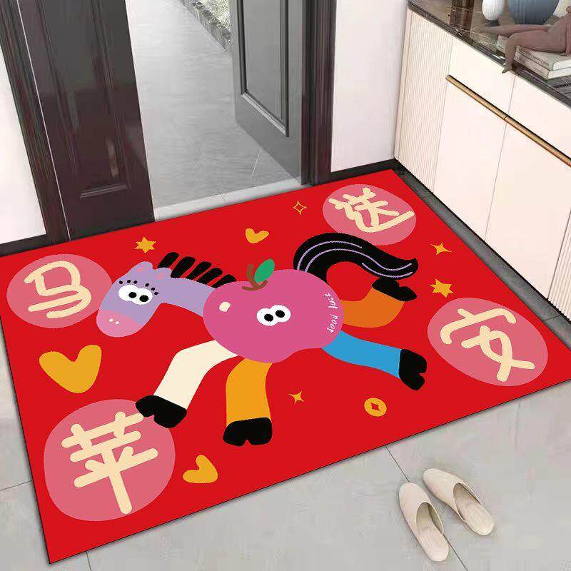 📚 马年新款红色入户门地垫进门口玄关门内门外蹭土绒布硅藻泥脚垫