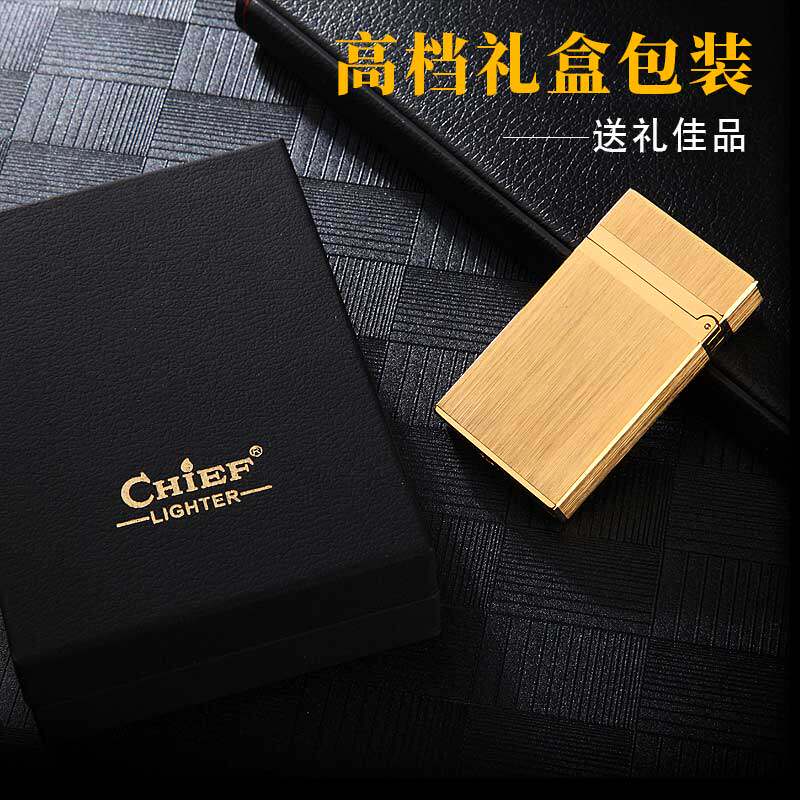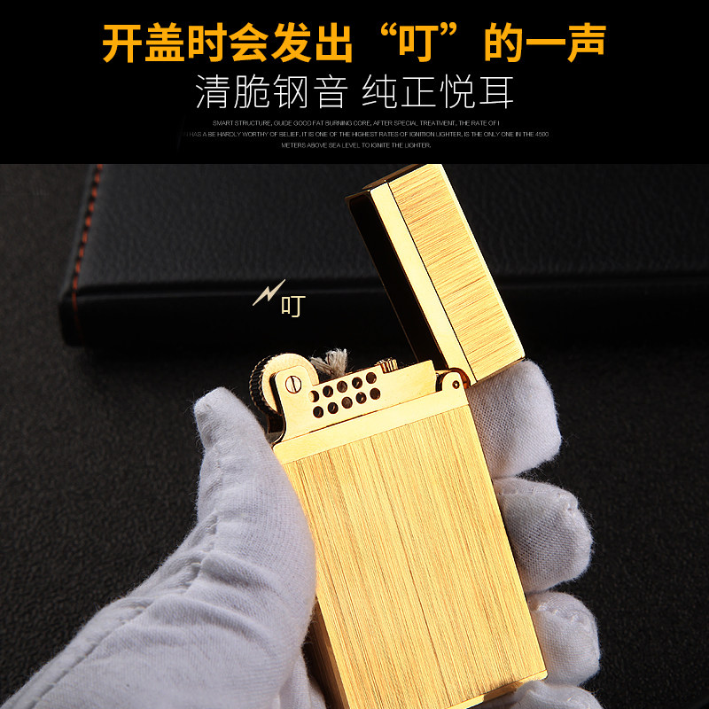 📚 首领纯黄铜煤油朗声打火机超薄防风创意老式砂轮个性高档礼物男士