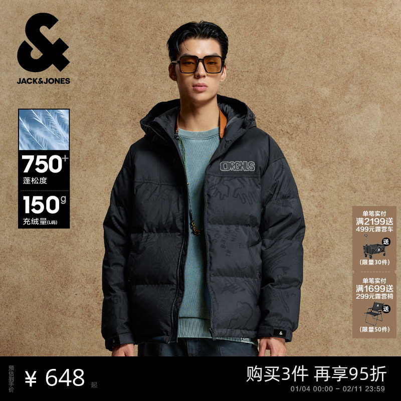 📚 【满印机能冰壳】杰克琼斯短款羽绒服男士冬潮流宽松连帽外套男装