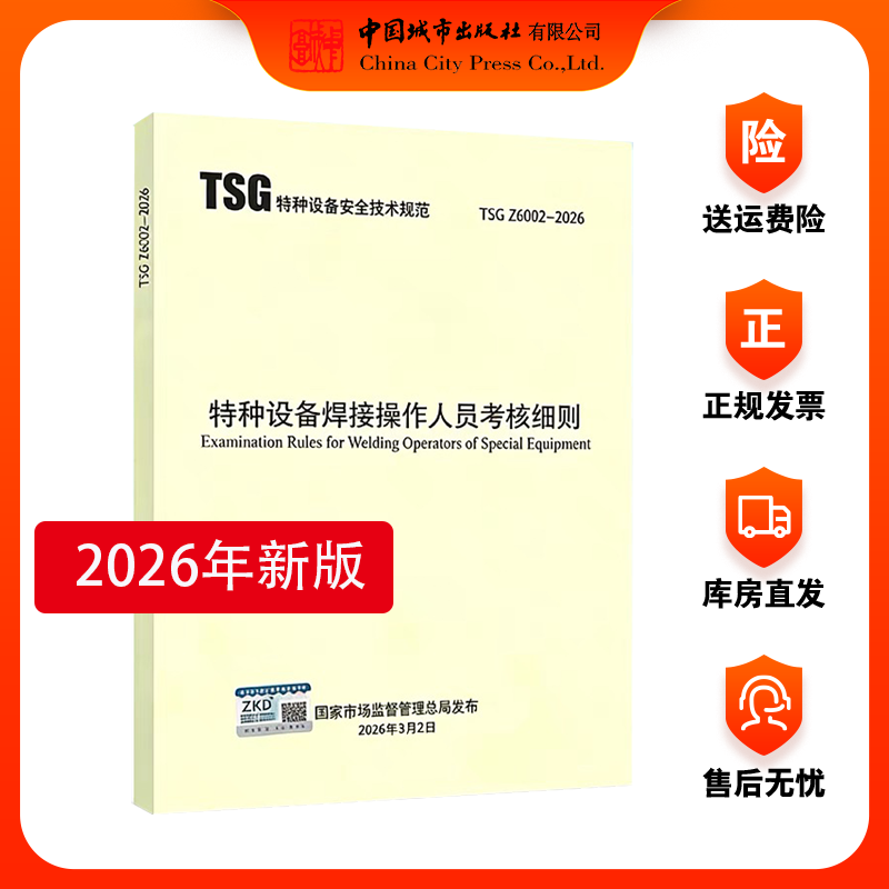 📚 任选2026年新标准 TSG 08-2026 特种设备使用管理规则2026年5月1日施行 TSG Z6002-2026 特种设备焊接操作 TSG 92-2026 承压类特种