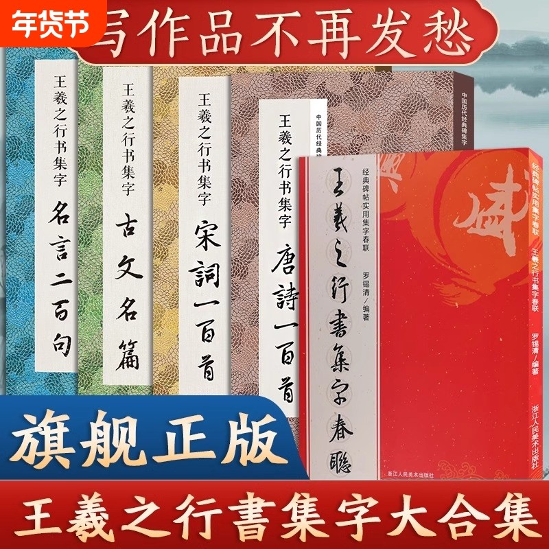 📚 王羲之行书集字合集 唐诗宋词一百首+春联120+名言200+集字古文名篇行书毛笔书法字帖王羲之兰亭序圣教序集字古诗临摹教程