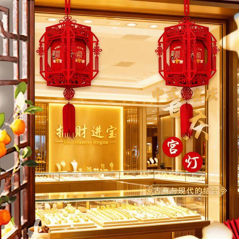 📚 开门红气氛布置灯笼氛围场景保险公司商铺挂饰2026年银行厅堂装饰