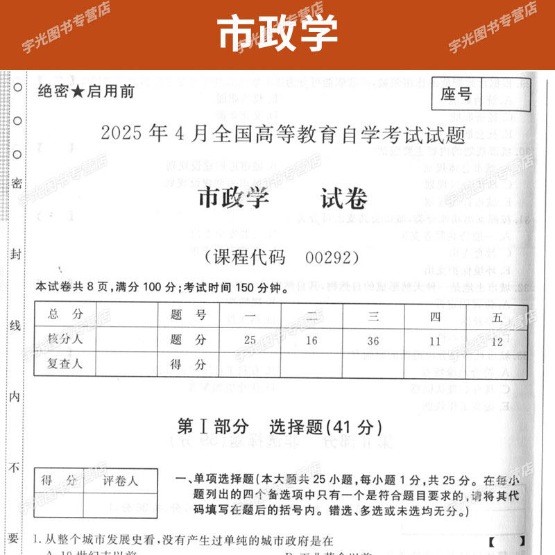 📚 自考通历年真题试卷00292市政学2026年自学考试教材行政管理专科书籍复习资料中专升大专高升专高起专成人自考成考教育用书