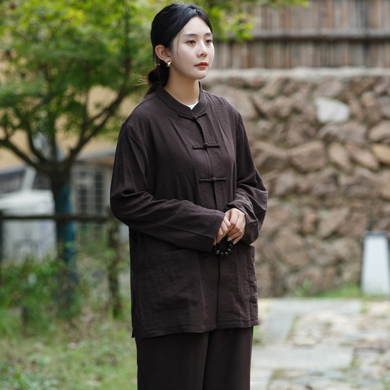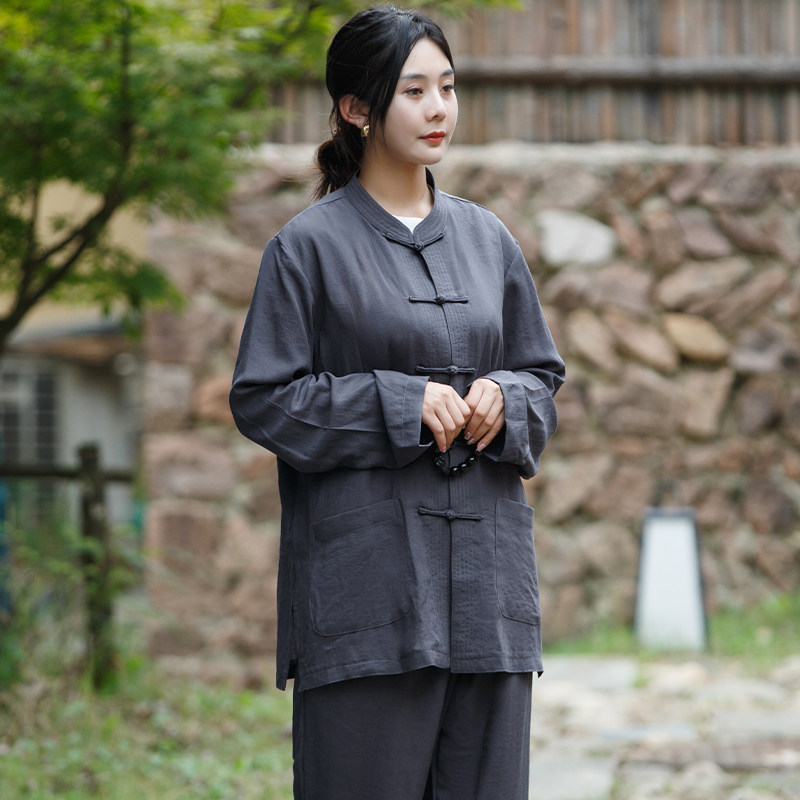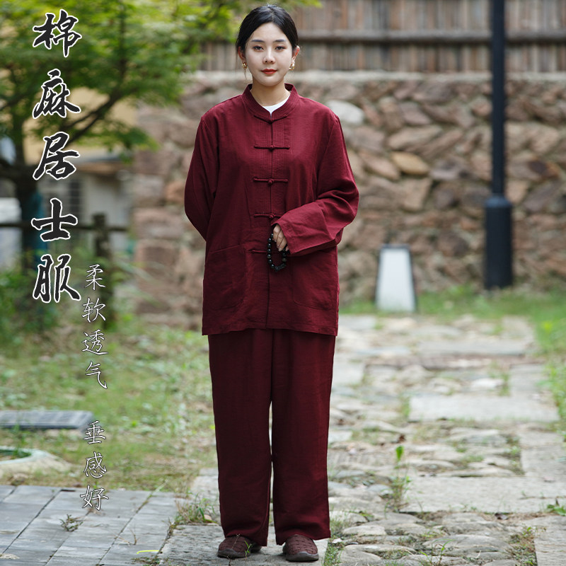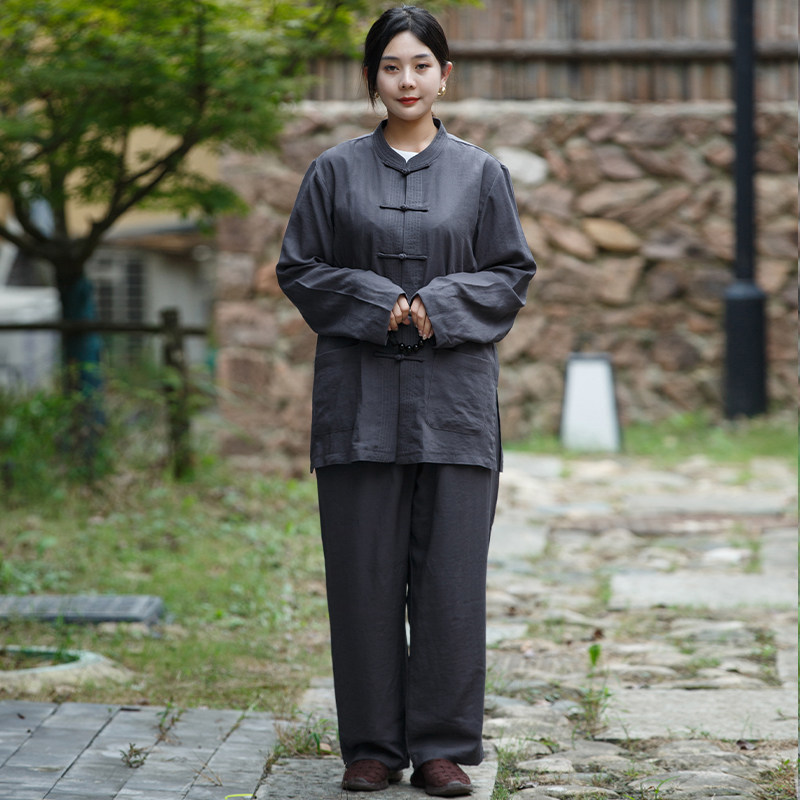 📚 高档棉麻海清居士服禅修服男女透气拜佛素衣春秋套装法会打坐海青