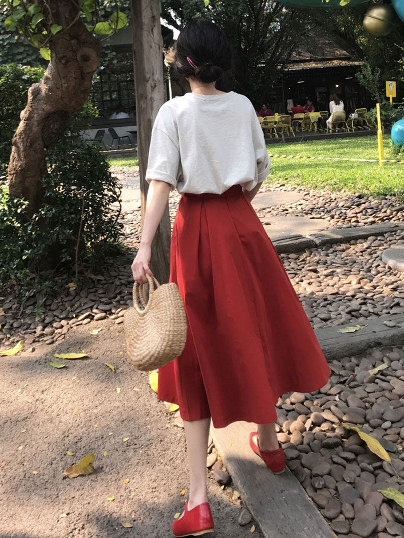 77¥ CZ356 IPgE5gAlGHj¥ https://m.tb.cn/h.iop7We7 2026年春秋季新款过膝红色a字半身裙中长款女高腰显瘦复古伞裙子 --------------------- 【原售价】150元 【现售价】89元。