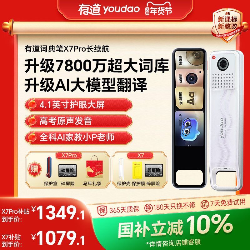 🎉亲爱的小伙伴们,今天我要给大家分享一款超级实用的学习神器——【国补立减10%】有道词典笔 X7/X7Pro长续航点读翻译通用英语单词电子词典笔!🎁