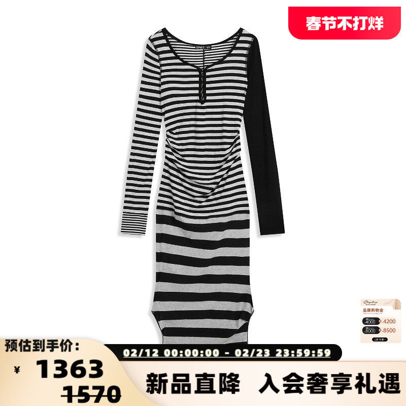 📚 OPEN YY 26春夏新款女士可叠穿中长条纹连衣裙T恤上衣银泰百货