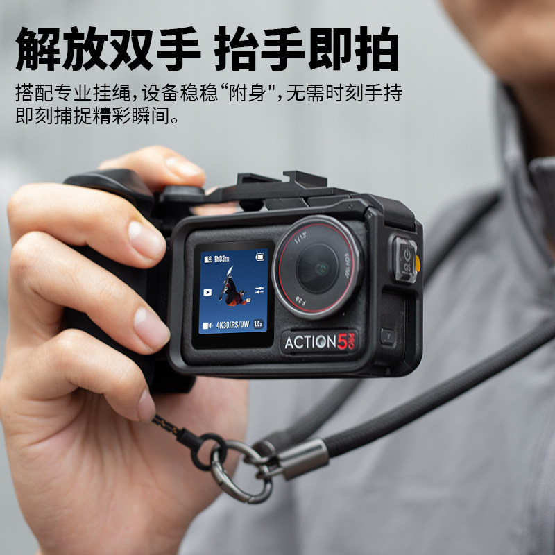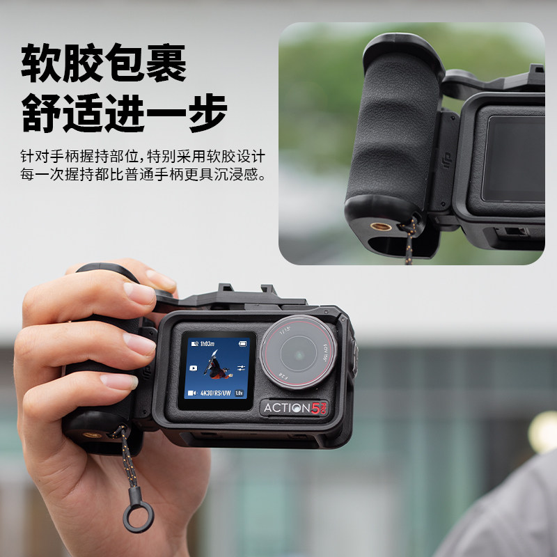 📚 适用于大疆Action 5 pro街拍手柄快门按键握把配件街拍套装拓展扫街神器运动相机action4/3兔笼转接配件