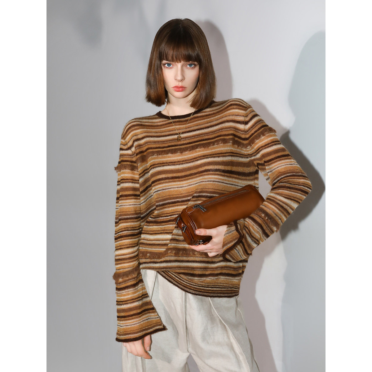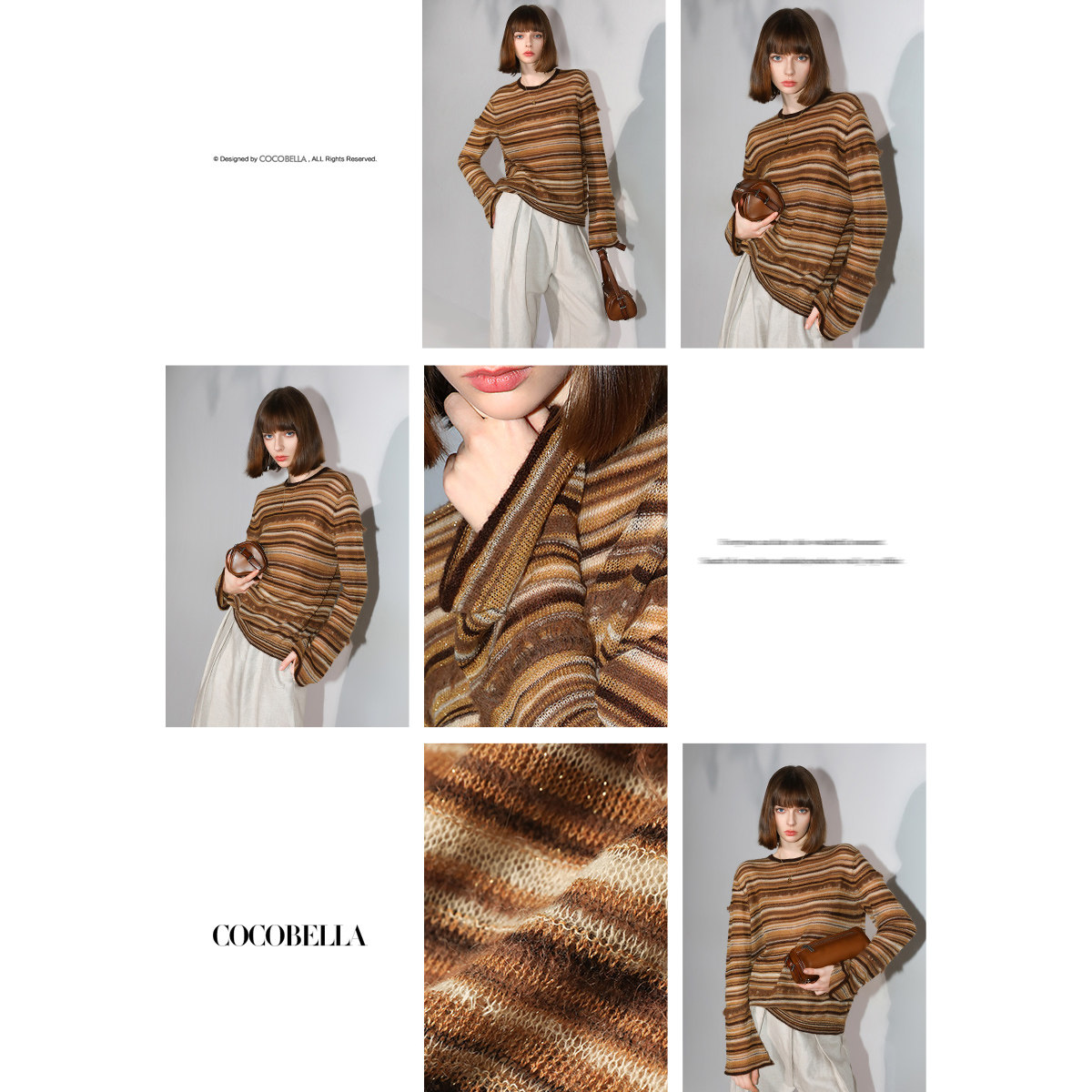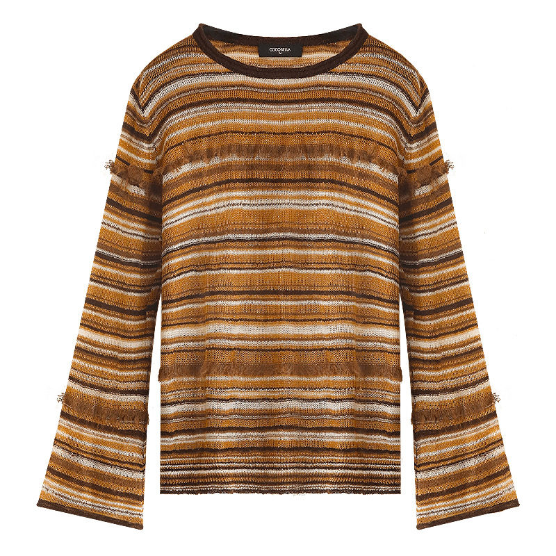 📚 COCOBELLA金线提花羊毛马海毛针织衫女秋美拉德条纹毛衣MZ7042