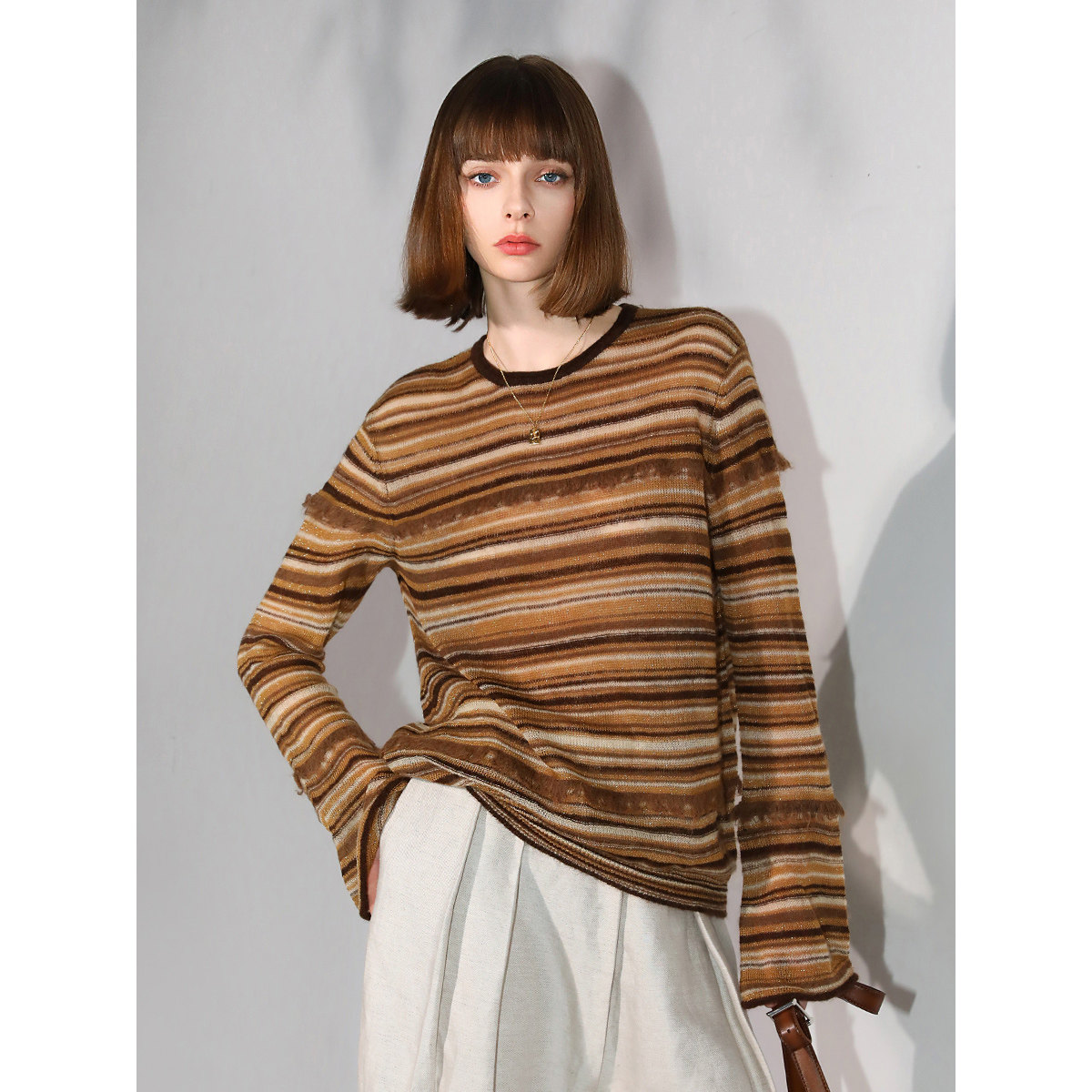 37¥ HU287 NW36UMjLOXq¥ https://m.tb.cn/h.7ywyxiW COCOBELLA金线提花羊毛马海毛针织衫女秋美拉德条纹毛衣MZ7042 --------------------- 【原售价】668元 【现售价】499元。