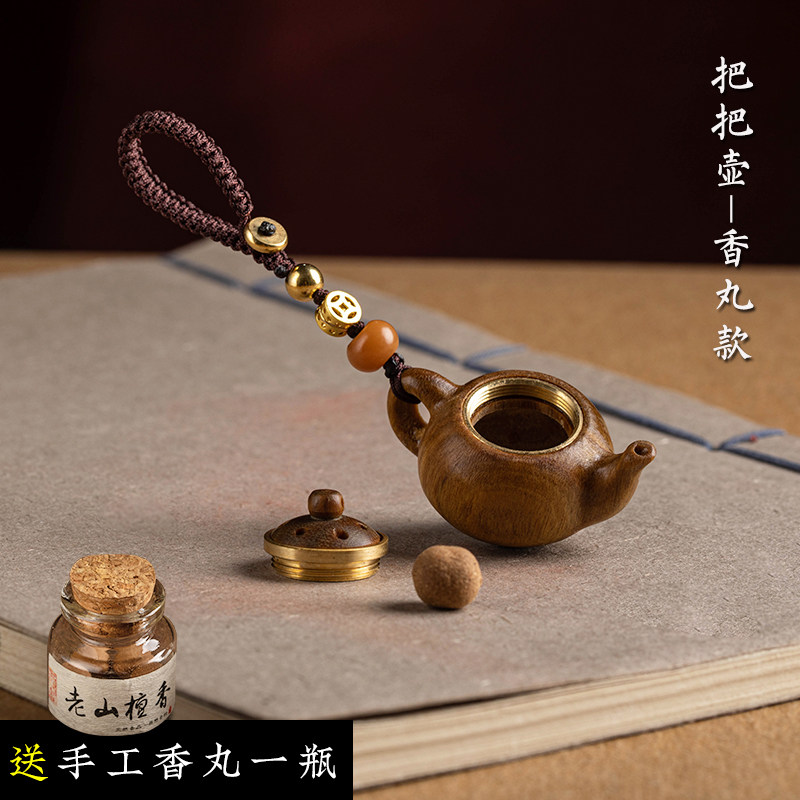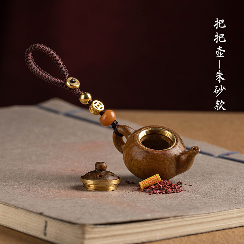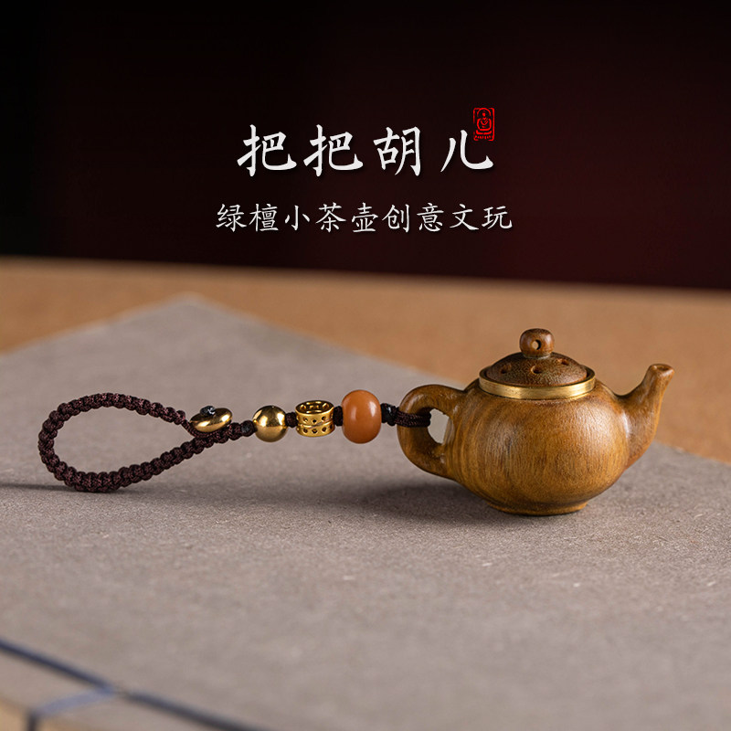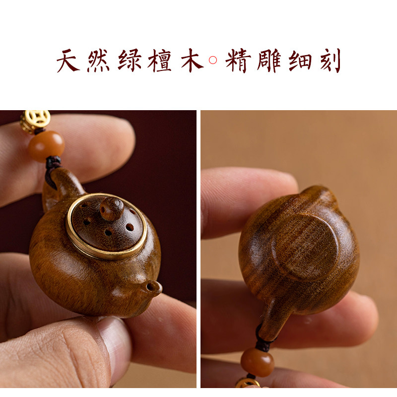 📚 绿檀木小茶壶把把壶手把件钥匙扣手机链打麻将助赢神器把把胡挂件