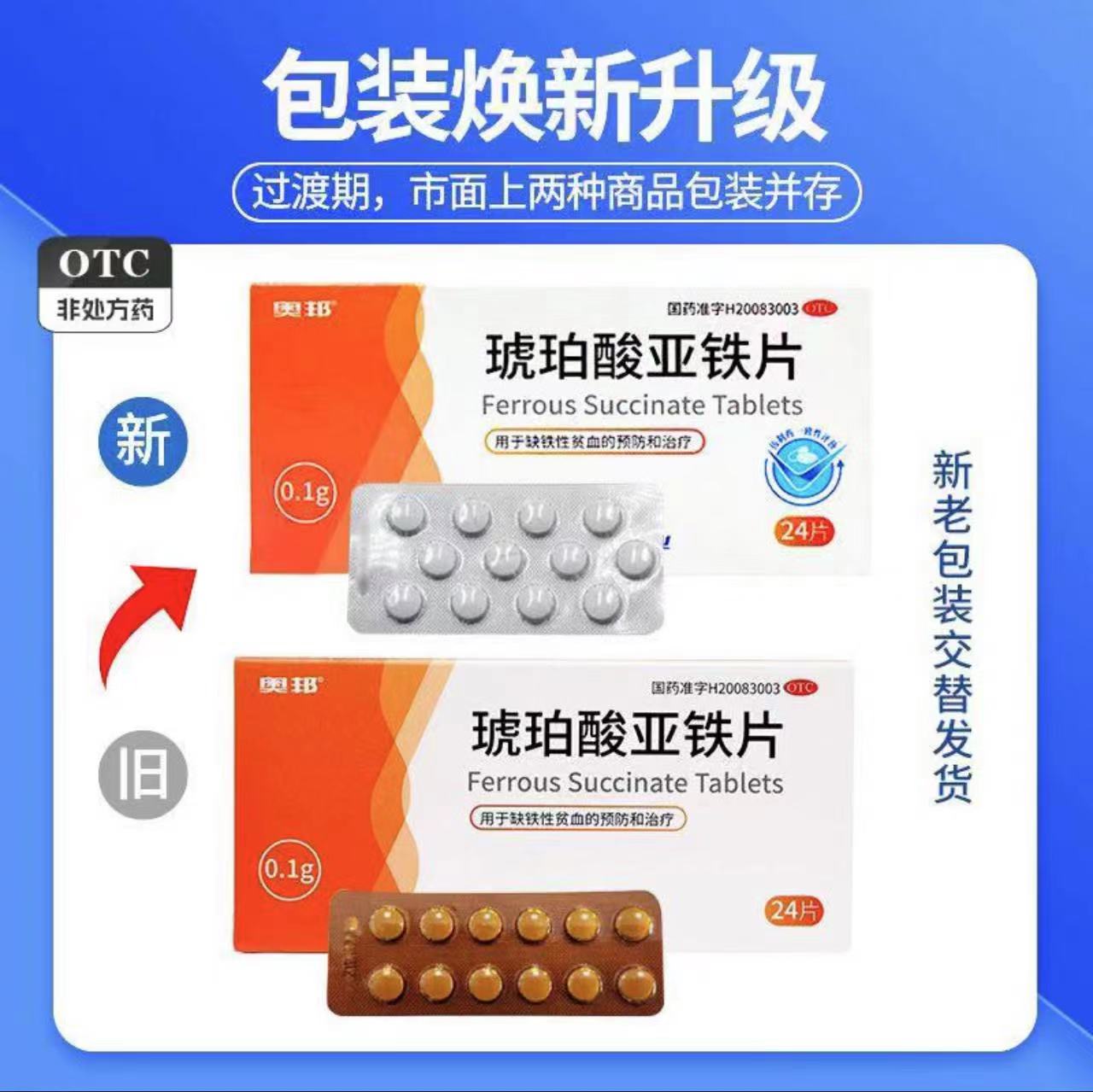📚 奥邦琥珀酸亚铁片24片缺铁性贫血的预防和治疗成人孕妇儿童正品