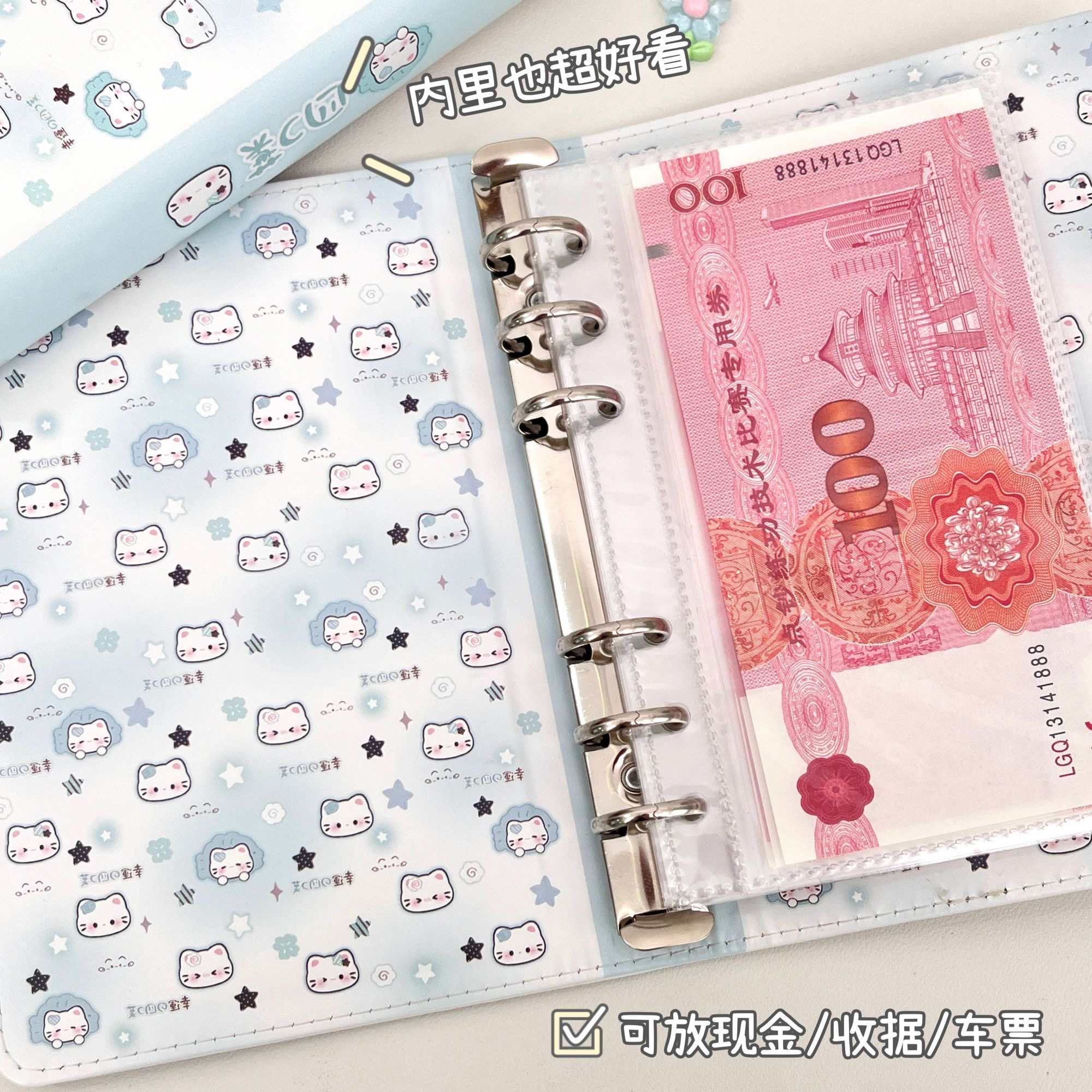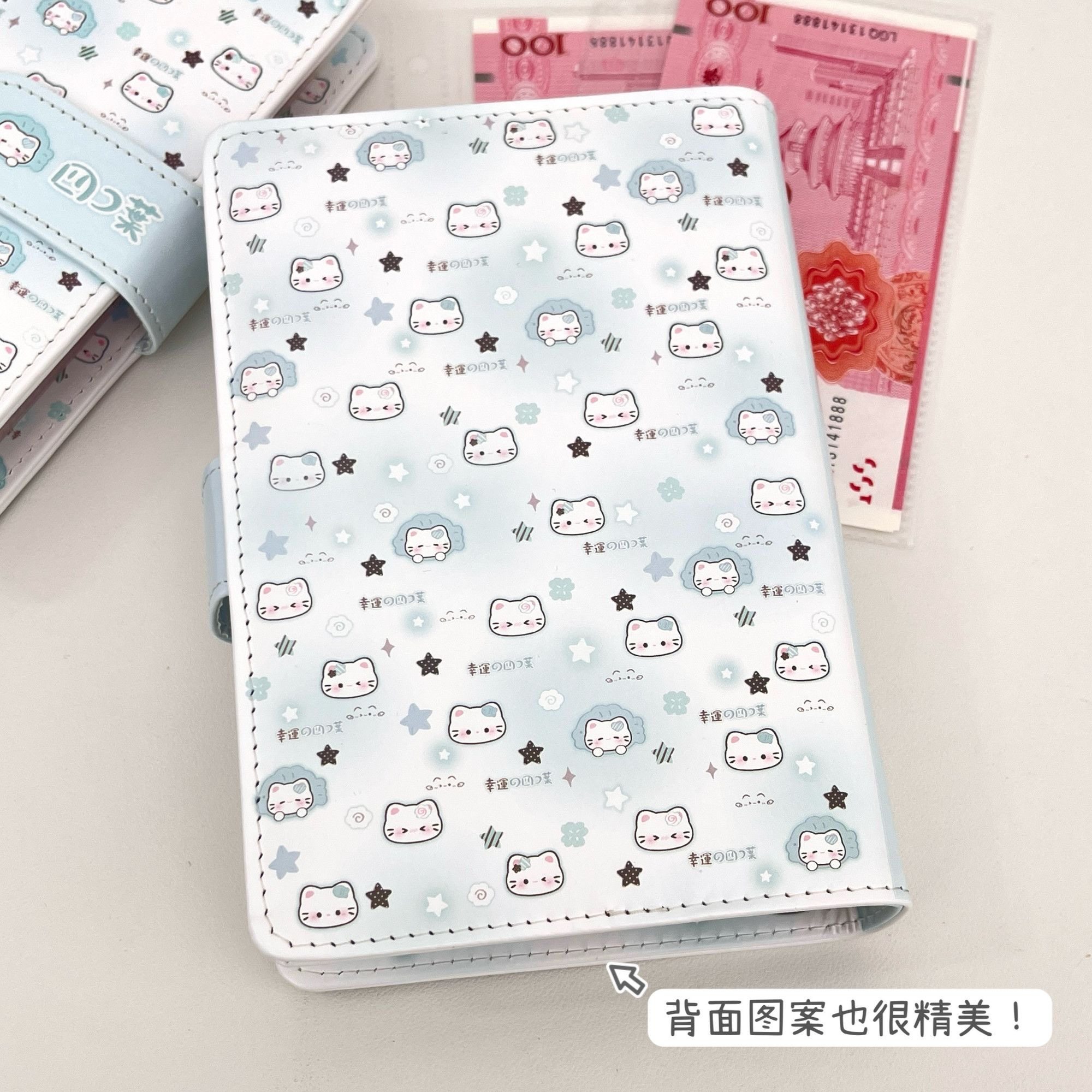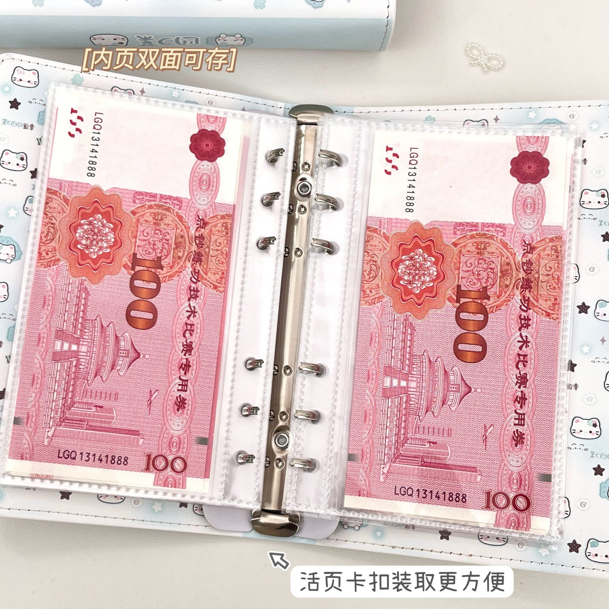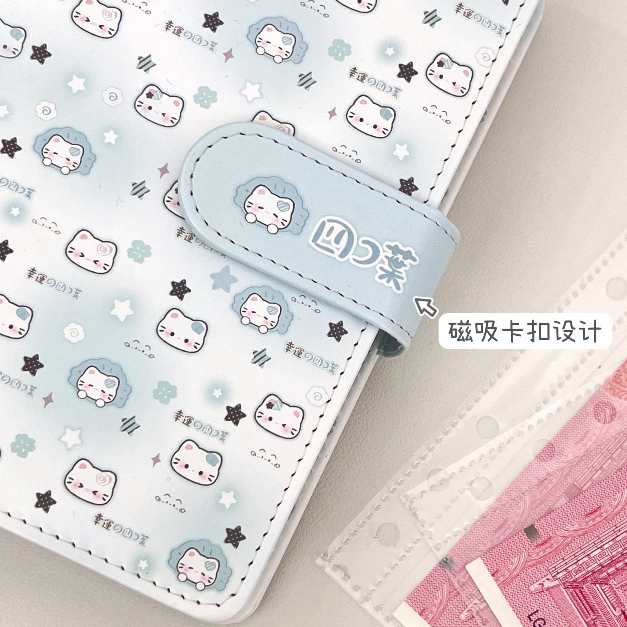📚 可爱薄荷小猫A6存钱本PU软皮多卡位大容量超薄证件纪念币收纳册透明收纳册可拆卸内页双面存钱理财收纳存钱本