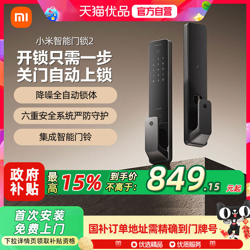 📚 小米智能门锁2 全自动指纹锁密码锁家用入户防盗门电子智能门锁A